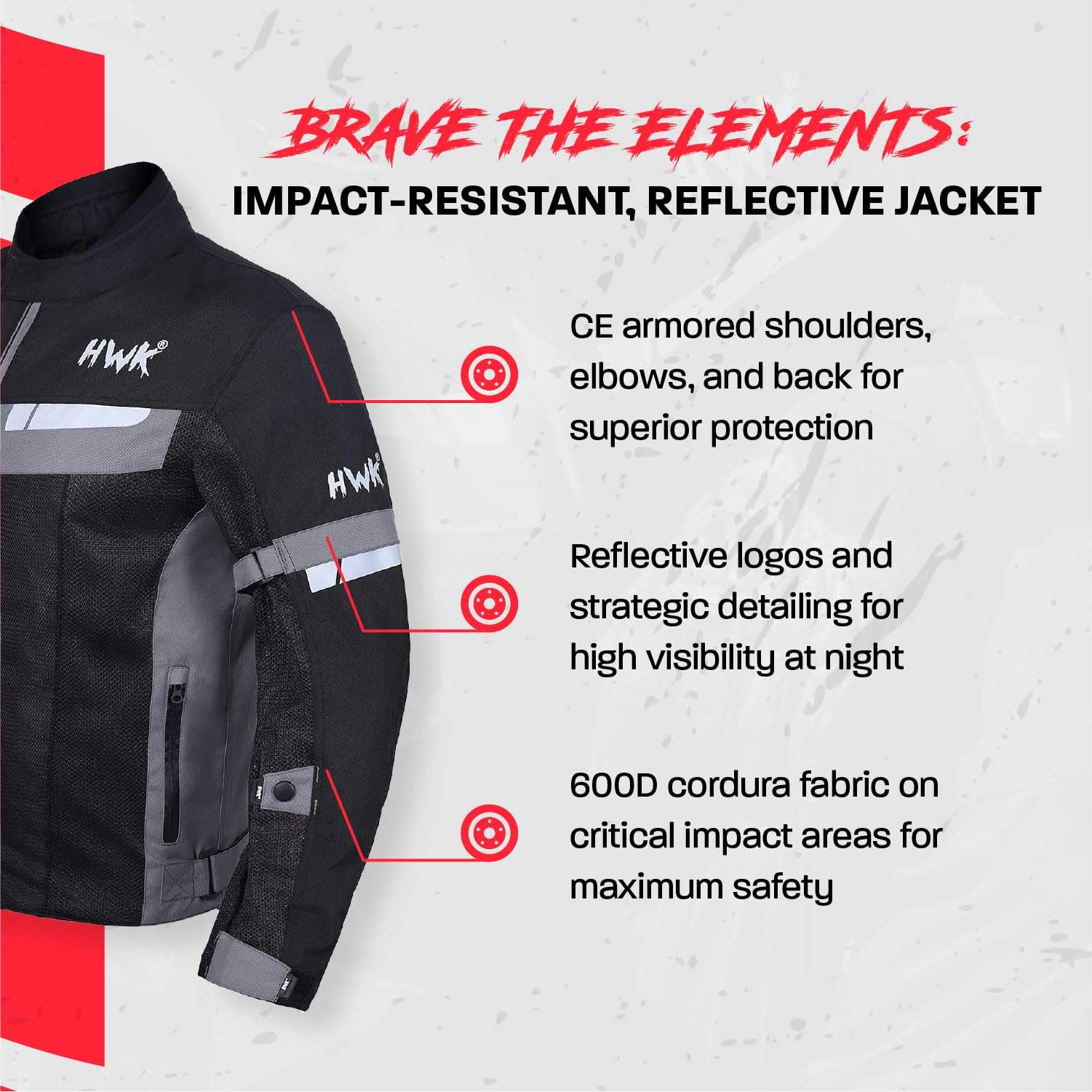 - Stay Cool In Summer: The HWK motorcycle jacket men features 100% breathable 3D macro and micro mesh panels, along with front-to-back air ventilation
